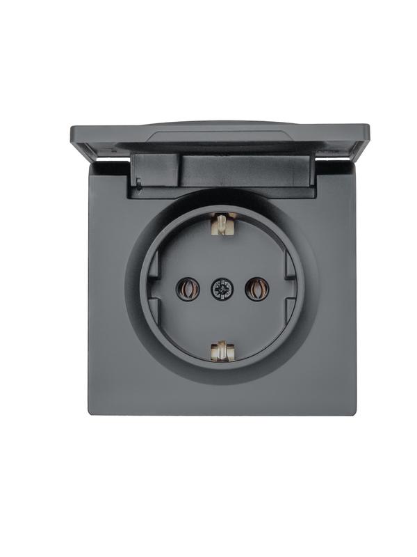 Розетка 1-м ОП LETO с заземл. с крышкой LETO ПБТ графит LEZARD 752-3400-123B