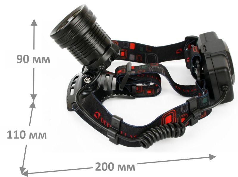 Фонарь аккумуляторный налобный E1335 2LED 4Вт фокус 4 режима аккум. 3.7В метал. черн. (бокс) Ultraflash 13905