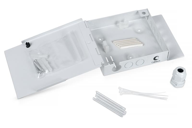 Бокс оптический настенный на 4 ST со сплайс-кассетой и КДЗС (без пигтейлов и проходных адаптеров) | код 7305c | Cabeus
