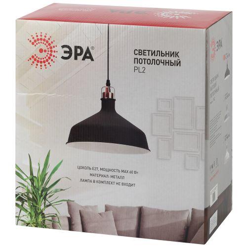 Светильник подвесной декоративный PL2 BK/RC E27 max 60W, d300 мм, шагрень черный/медь | код Б0037413 | ЭРА