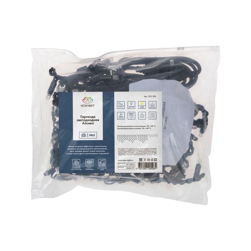 Гирлянда Айсикл Бахрома светодиодная 3,2х0,9 м, с эффектом мерцания, 120 LED, черный провод каучук, теплое белое свечение | код 255-336 | Neon-Night