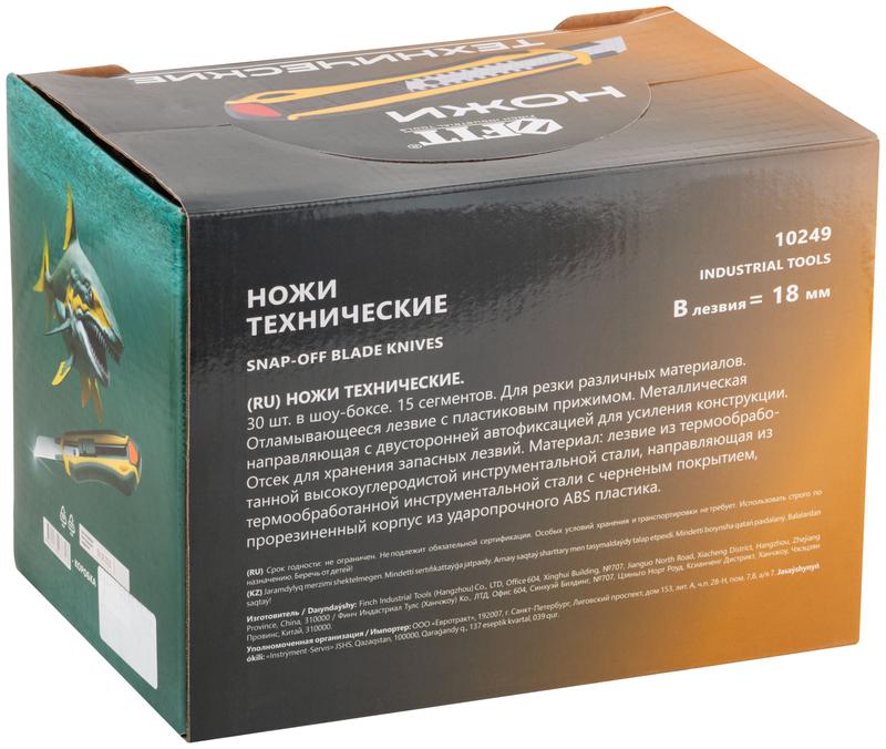 Нож технический 18 мм усиленный прорезиненный, 2-х сторонняя автофиксация, 30 шт. в шоу-боксе | код 10249 | FIT