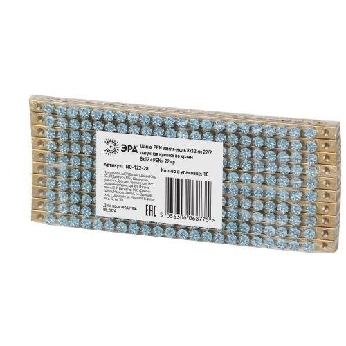 Шина NO-122-28 PEN земля-ноль 8х12мм 22/2 латунная крепеж по краям | код Б0047243 | ЭРА