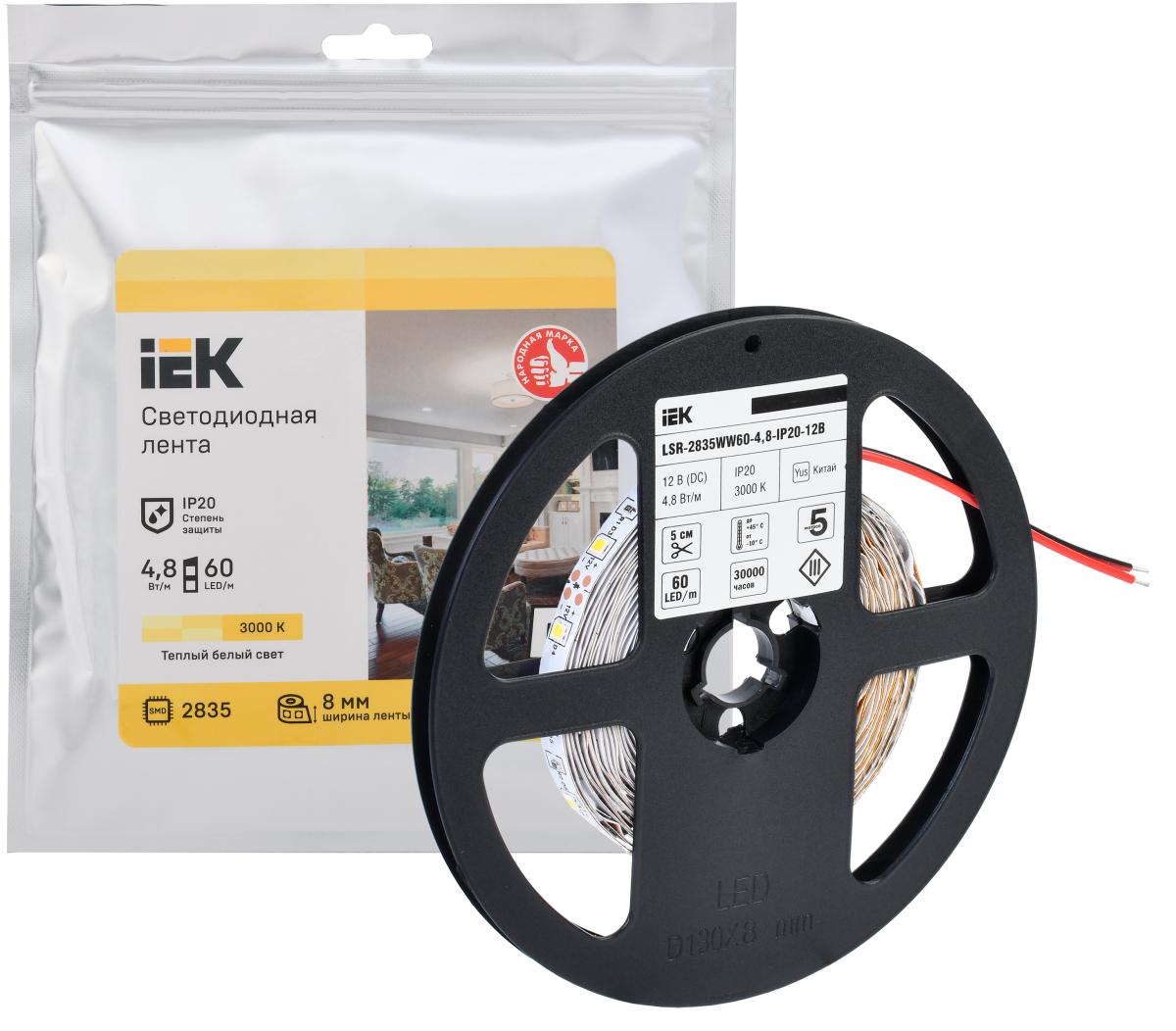 Купить Лента светодиодная 5м LSR-2835WW60-4,8-IP20-12В | код LSR1-1-060-20-3-05 | IEK | Магазин электрики - электрооборудование от разных производителей.