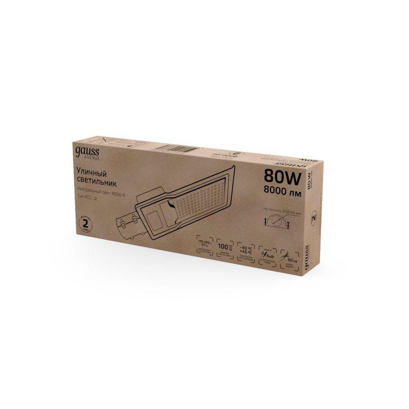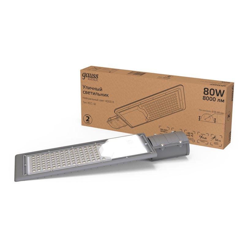 Светильник светодиодный Avenue ДКУ 80Вт 4000К IP65 8000лм 420х160х57 190-250В КСС "Ш" | Код. 629534280 | Gauss
