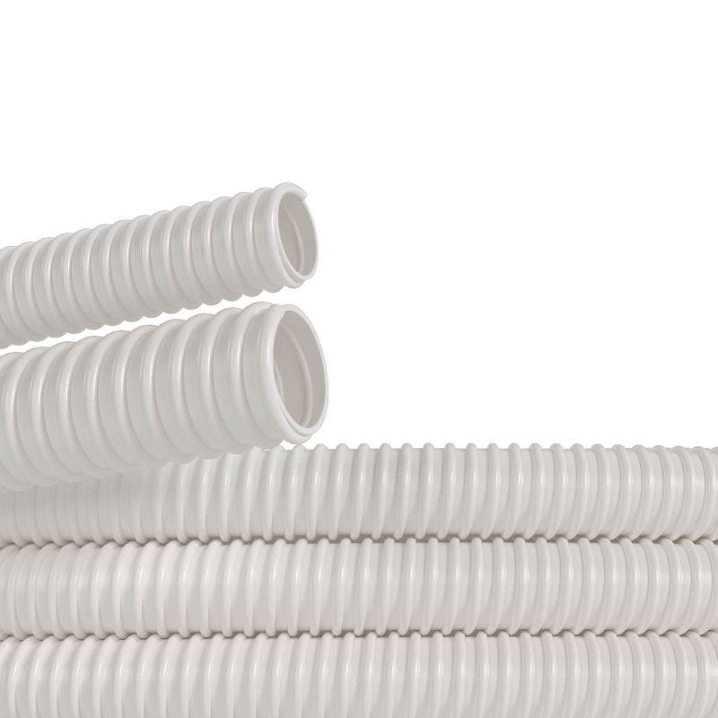 Трубы ПВХ гибкие армированные состоят из спиралевидного жесткого ПВХ каркаса, залитого мягким ПВХ-пластикатом. Используются для монтажа открытой и скрытой электропроводки напряжением до 1500 В при строительстве и реконструкции жилых, обществе