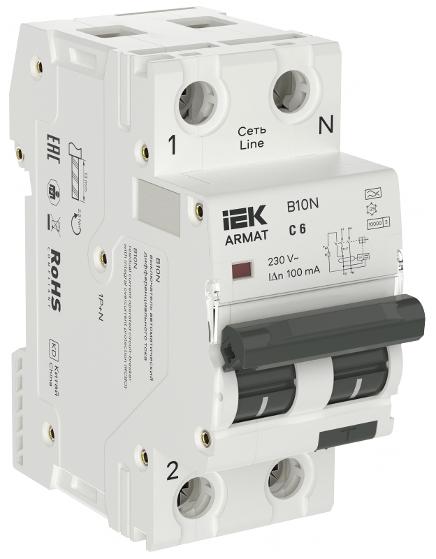 ARMAT АВДТ B10N 1P+NP C6 100мА тип A (36мм) IEK | код AR-B10N-1N-C006A100 | IEK