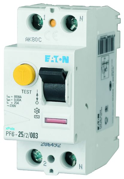 Устр-во защитного отключения 63/0,03А (АС), 2 полюса, устойчивость к импульсному току 250А, устойчивость к КЗ 6 кА, PF6-63/2/003 | код 286500 | EATON