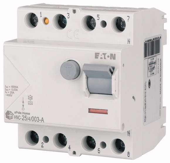 Выключатель дифференциального тока (RCCB), 25A, 4p, 30мА, тип чувствительности AC, HNC-25/4/003 | код 194693 | EATON