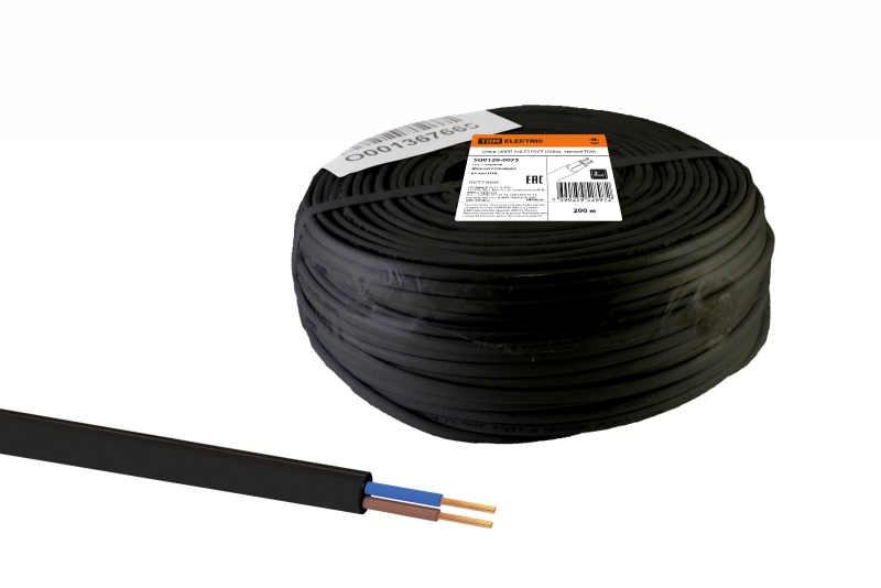 Шнур ШВВП 2х0.75 ГОСТ (бухта 200м) черный | код SQ0120-0075 | РЭМЗ ТМ