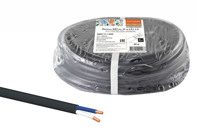Провод ВВГмб-П нг(А)-LS 2х1.5 220/380 (бухта 20м) Народный ТРТС | код SQ0117-1209 | РЭМЗ ТМ