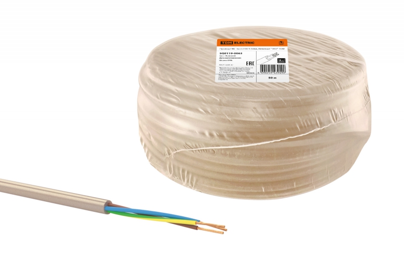 Провод ПВС 3х2.5 ГОСТ (бухта 50м) бежевый ЭКО | код SQ0119-0063 | РЭМЗ ТМ