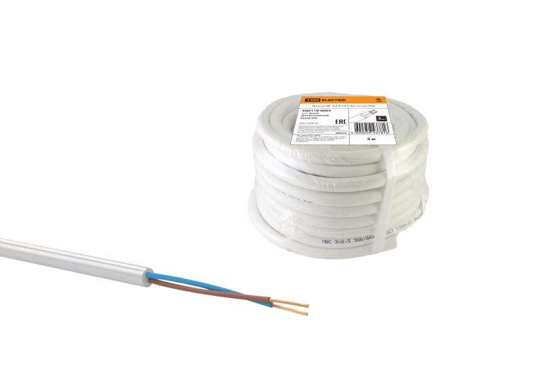 Провод ПВС 2х2.5 ГОСТ (бухта 5м) белый | код SQ0118-0004 | РЭМЗ ТМ