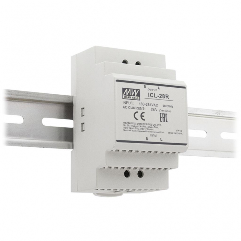 Ограничитель пускового тока, рабочее напряжение 180…264В AC, 47…63Гц, раб. ток 28А, огр. ток 48А, на DIN рейку 52.5x90x54.5мм, -30…+70С | код ICL-28R | MeanWell
