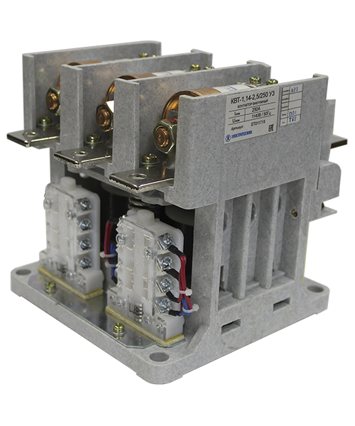 Контактор вакуумный КВТ-1,14-4/400-3 У3, трёхполюсный, 400А, 380В, 2з+2р, нереверсивный, без реле, с литым модулем питания, IP00 (ЭТ) | код ET011718 | Электротехник