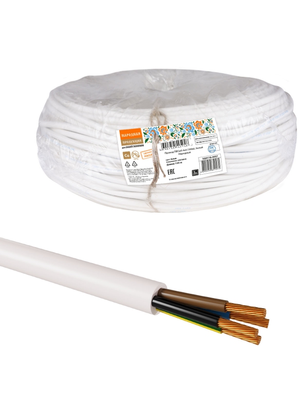 Провод ПВСмб 4х4 (бухта 100м) белый Народный ТРТС | код SQ0118-0937 | РЭМЗ ТМ