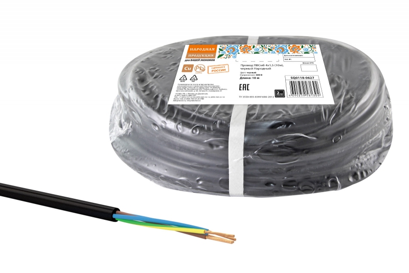Провод ПВСмб 4х1.5 (бухта 10м) черный Народный ТРТС | код SQ0118-0627 | РЭМЗ ТМ