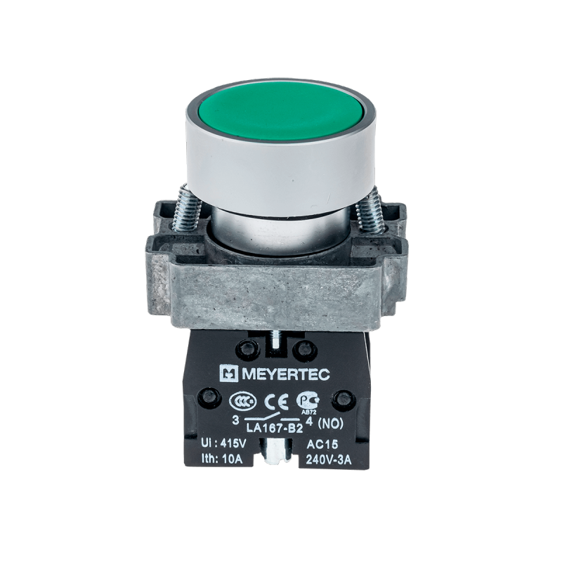 Кнопка плоская, зеленая, 1NO, металл MTB2-BAZ113 | код 54245| MEYERTEC