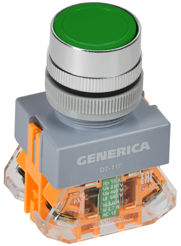Кнопка D7-11T d=22мм 1з+1р с фикс. зел. GENERICA | код BBT50-11T-3-21-K06-G | GENERICA by IEK