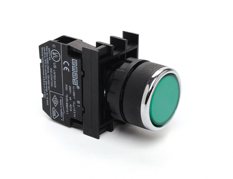 Кнопка нажимная круглая зеленая B100DY | код B100DY | EMAS