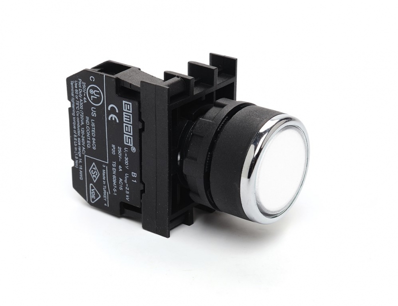 Кнопка круглая без фиксации, белая (1НО), B100DB | код B100DB | EMAS