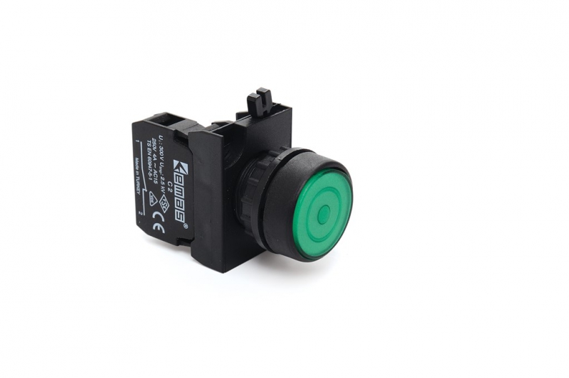 CP100FY Кнопка нажимная круглая зелёная с фиксацией (1НО) | код CP100FY | EMAS
