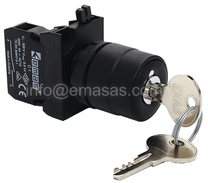 Кнопка с ключом 2-0-1, с фиксацией,ключ выним. во всех полож. (1НО) (CP) | код CP100AC30 | EMAS