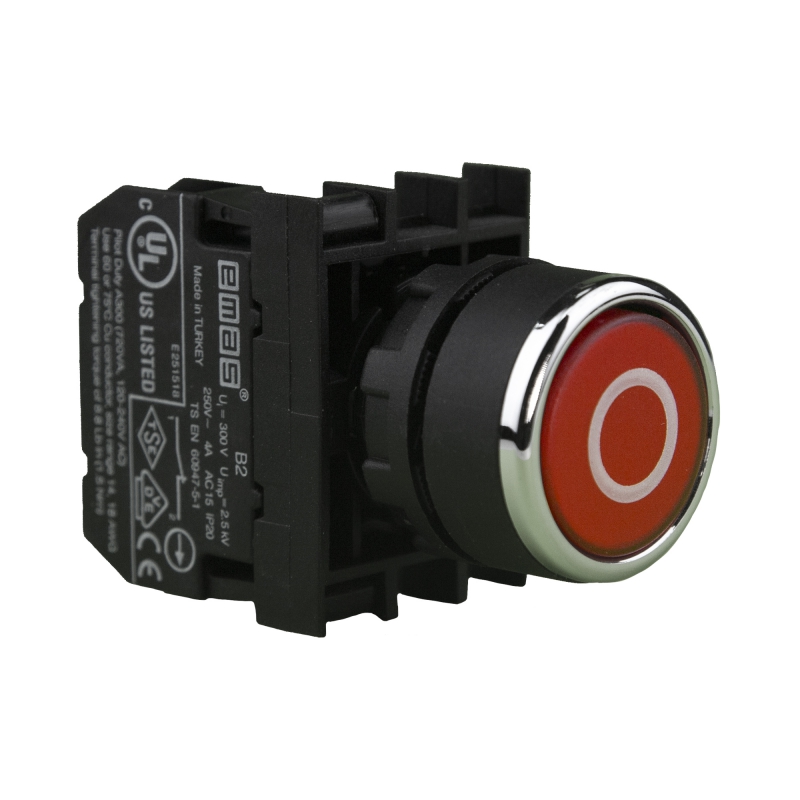 Кнопка круглая без фиксации с маркировкой 0. красная (1НЗ), B200DKO | код B200DKO | EMAS