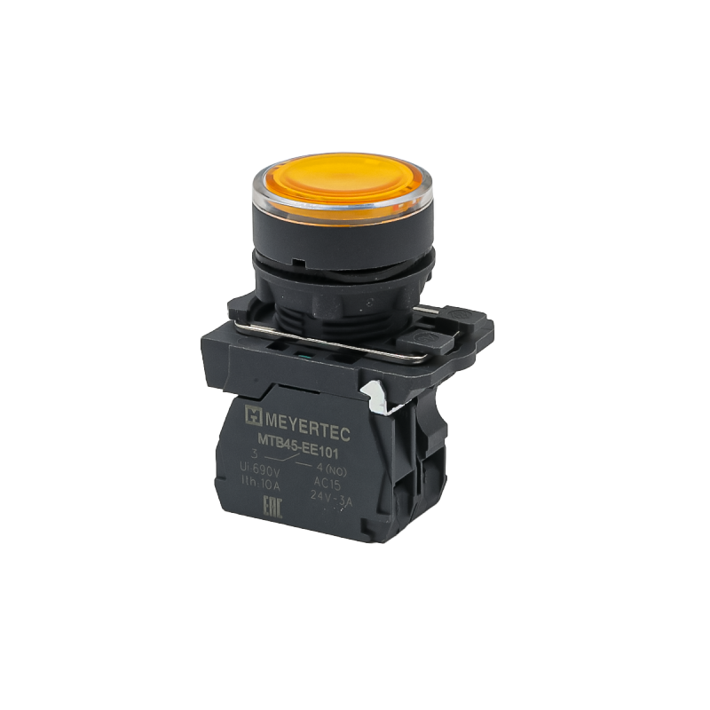 Кнопка желтая с подсветкой, 1NO, 220V AC/DC, IP65, пластик MTB5-AW35713 | код 137271 | MEYERTEC