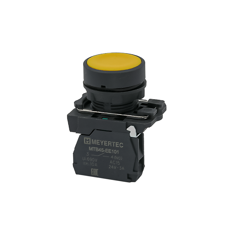Кнопка плоская желтая, 1NO, IP65, пластик MTB5-AA51 | код 137228 | MEYERTEC