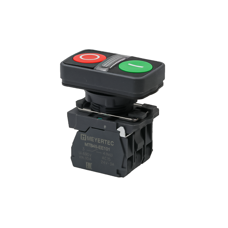 Кнопка двойная плоская с подсветкой, красная/зеленая, маркировка I+O, 1NO+1NC, 24V AC/DC, IP65, пластик MTB5-AW83751 | код 137265| MEYERTEC
