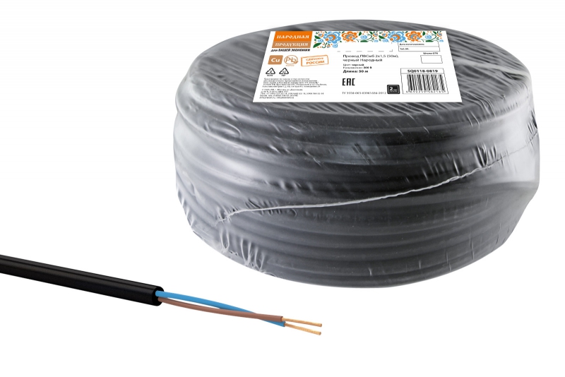 Провод ПВСмб 2х1.5 (бухта 50м) черный Народный ТРТС | код SQ0118-0819 | РЭМЗ ТМ