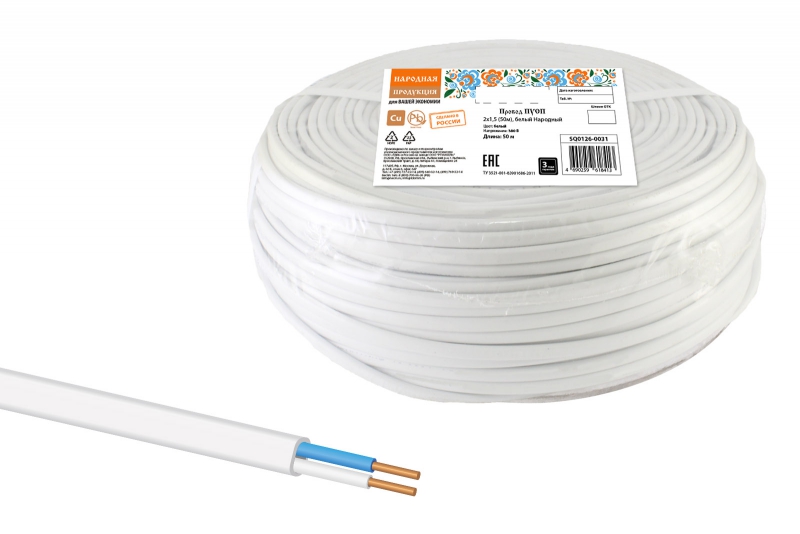 Провод ПУСП 2х1.5 (бухта 50м) белый Народный ТРТС | код SQ0126-0031 | РЭМЗ ТМ
