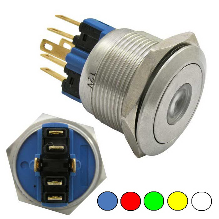 Кнопка антивандальная с подсветкой RUICHI GQ22-11D/Y on-(off)+off-(on), М22, IP65, никелированная латунь | код 77933 | Ruichi