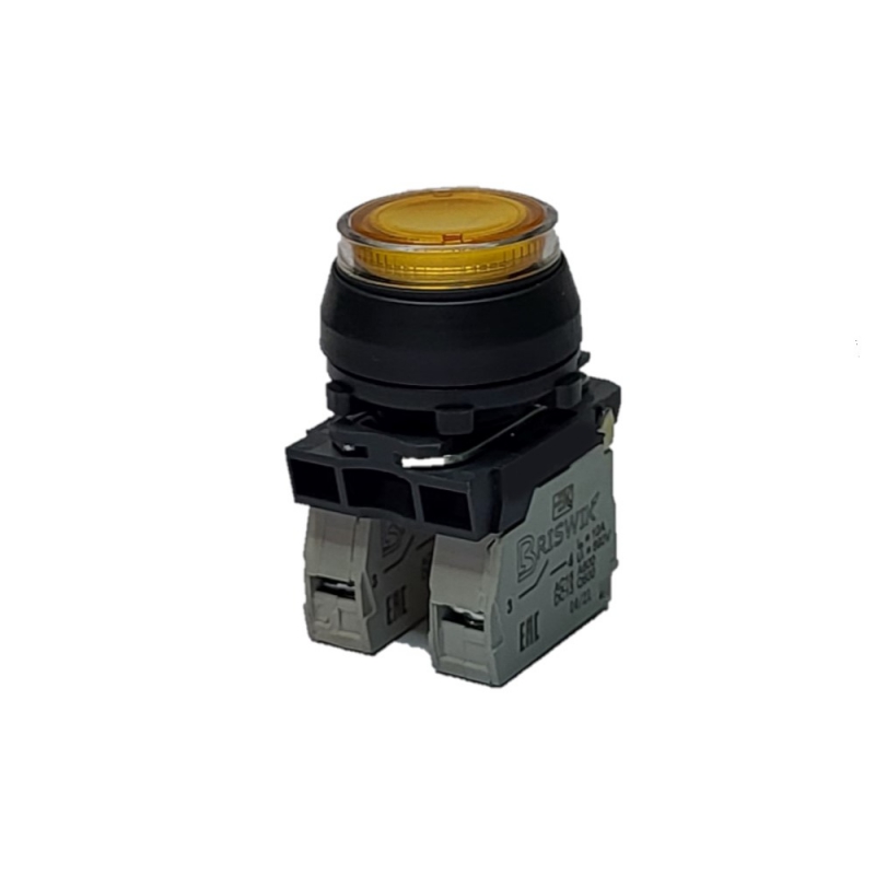 Выключатель Briswik КЕ 171/2м -Л 24В желтый 1но+1нз цилиндр с подсветкой IP66 УХЛ2 10А | код aZ-EB-6Ai-3421 | Briswik