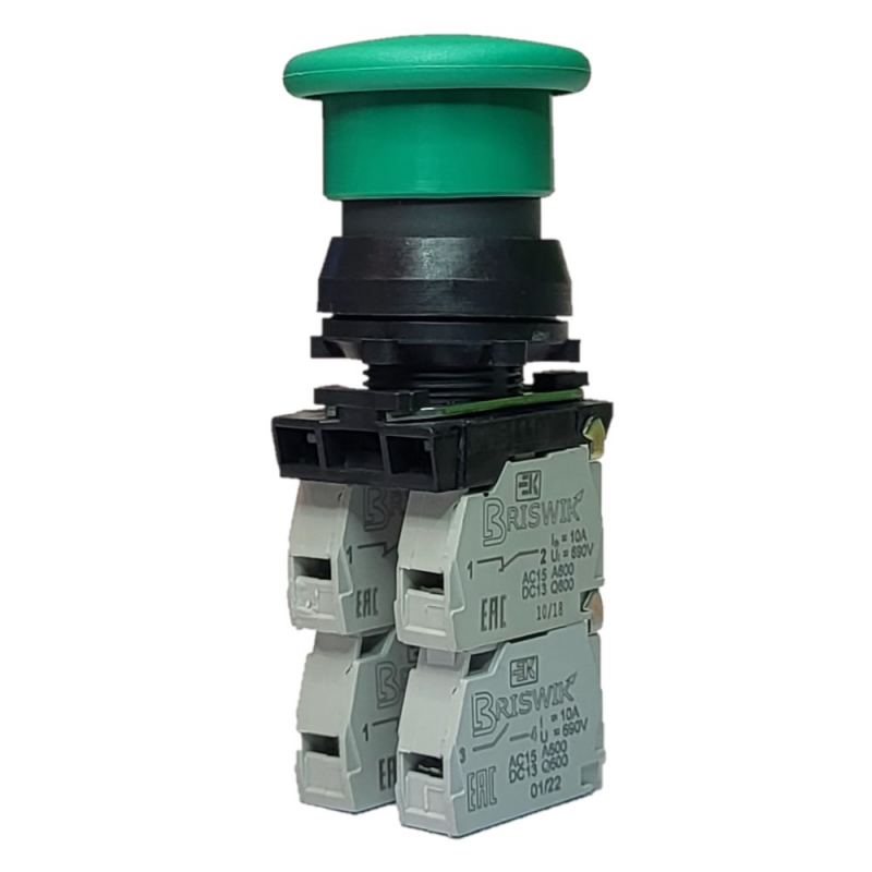 Выключатель Briswik КЕ 022/8м зеленый 1но+2нз Гриб IP40 УХЛ3 10А | код aZ-HB-0Ai-0333 | Briswik