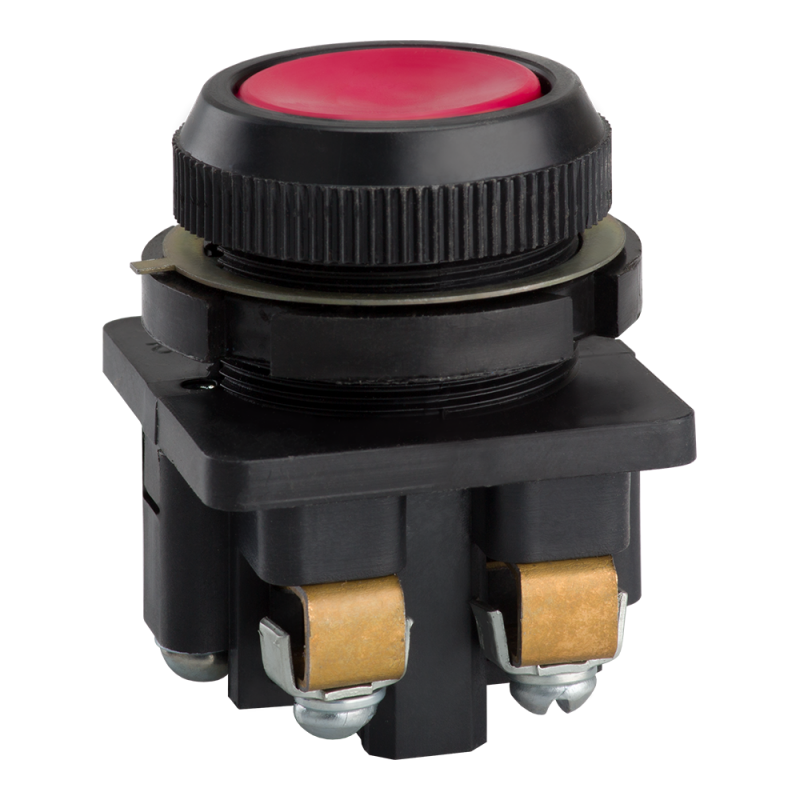 Нажимная кнопка (кнопочный выключатель/переключатель) в сборе КЕ 011-У3-исп.4 (красный) | код 295472 | КЭАЗ