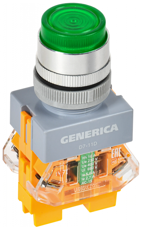 Кнопка D7-11D d=22мм 1з+1р с подсв. зел. GENERICA | код BBT50-11D-3-12-K06-G | GENERICA by IEK