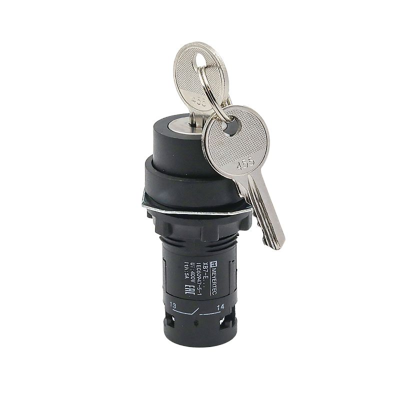 Переключатель c ключом на 2 положения с фиксацией, 1 выемка, 1NO+1NC, IP54, пластик MTB7-EG25 | код 132714 | MEYERTEC