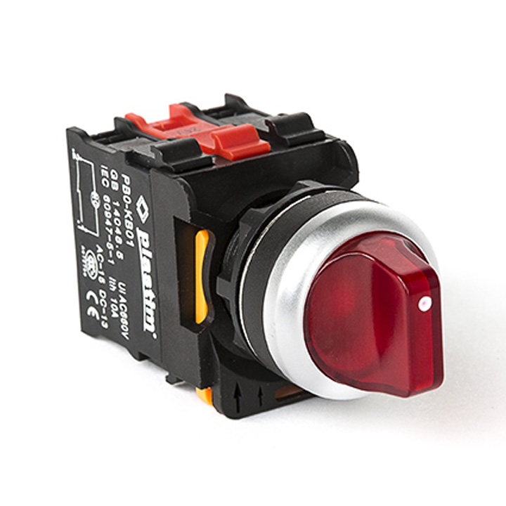 PB0-AK134M5 Переключатель с подсветкой, с фиксацией, 3 положения 1-0-2, 2NC. AC 230 В. (Красный) | код PB0-AK134M5 | Plastim