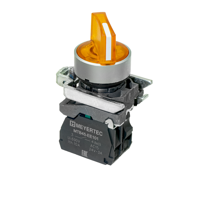 Переключатель на 3 положения с фиксацией и подсветкой, желтый, 1NO, 24V AC/DC, IP65, металл MTB4-BK35711 | код 137187 | MEYERTEC