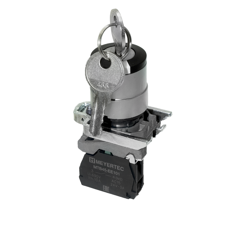 Переключатель с ключом на 2 положения с фиксацией, 1 выемка, 1NO, IP65, металл MTB4-BG21 | код 137151 | MEYERTEC