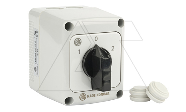Переключатель PNBS 25 53, 3P, 25A, тип 1-0-2 (60°), 3NO на 1_2, черная рукоятка, в корпусе IP65 | код EAC602468 | Rade Koncar