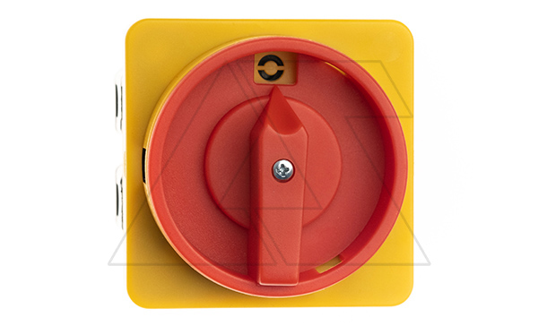 Переключатель BS 63 10 LK, аварийный, 3P, 63A, тип 0-1, 22kW(400VAC по АС-23), на дверь, красная блокируемая в 0 рукоятка, фронт IP40 | код EAC602646 | Rade Koncar