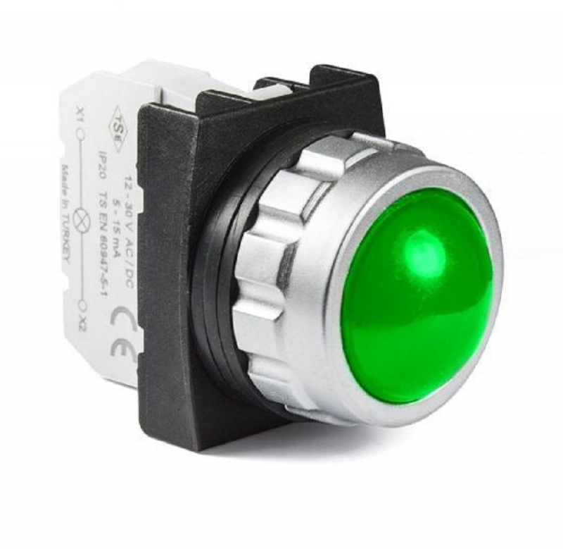 Сигнальная арматура со светодиодом серии H 100-230 В переменного тока, зеленая, 30 мм | код H0Y0XY | EMAS