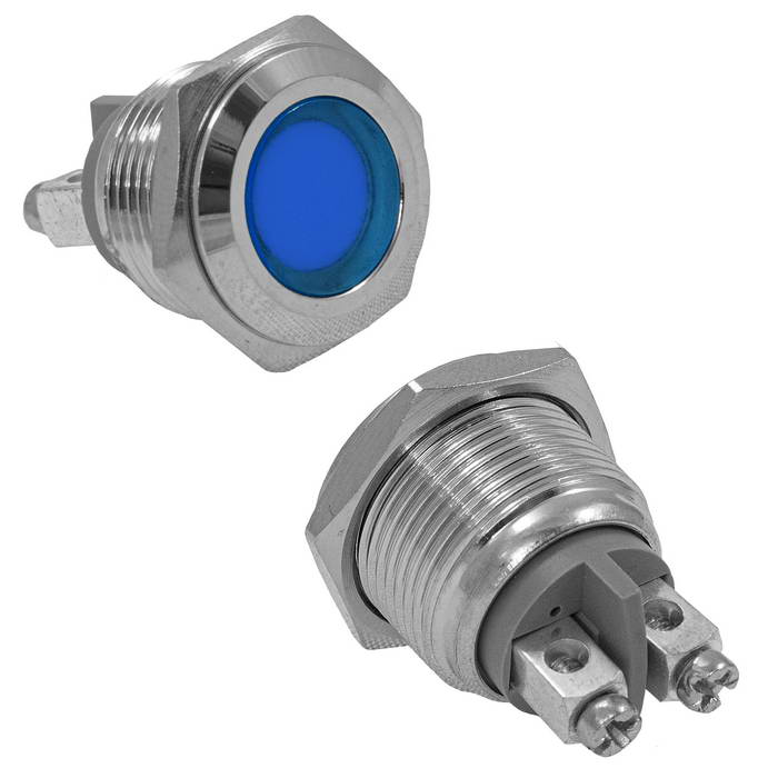 Индикатор антивандальный RUICHI GQ16F-B, синий, M16, IP65, никелированная латунь | код 114118 | Ruichi