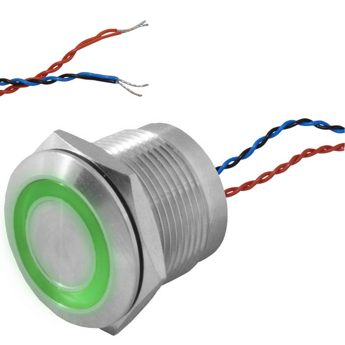 Кнопка пьезо с подсветкой, с фиксациией RUICHI RPS19ZE/G on-off, М19, IP68, нержавеющая стал | код 114246 | Ruichi