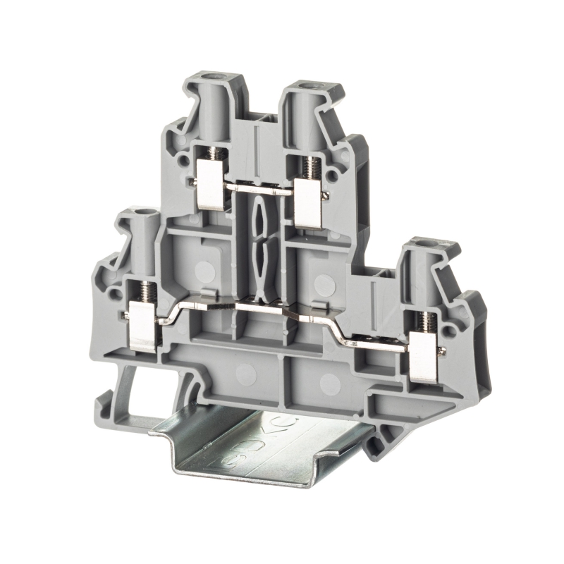 Клемма двухуровневая, винтовой зажим, 4 точки подключения, 4 кв.мм, серая | код TTURB-4 | DKC