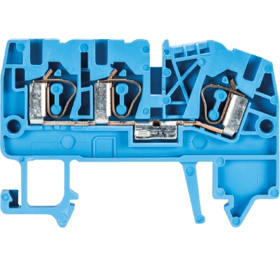 Проходная клемма, 3 точки подключения, тип фиксации провода: пружинный, номинальное сечение: 2,5 мм кв., 24A, 800V, ширина: 5 мм, цвет: синий, тип монтажа: DIN 35 | код 56.703.5053.6 | Wieland
