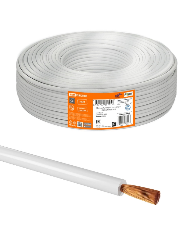 Провод ПуГВнг(А)-LS 1х2.5 ГОСТ (бухта 100м) белый | код SQ0124-0835 | РЭМЗ ТМ